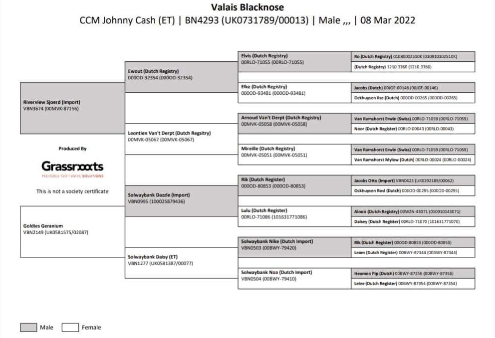 We are offering straws by Johnny Cash. He is a ram with solid conformation and correct markings. He has great wool quality and coverage. He is an ARR ram.
